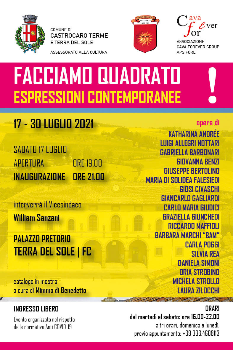 La presentazione, alla presenza del giornalista Marcello Zane, della curatrice del concorso Tiziana De Palma e dell'autrice Milde Caffetto, avverrà all'aperto, negli spazi antistanti la Galleria, con posti a sedere distanziati. L'ingresso nello spazio espositivo avverrà con turnazione in modo da rispettare il dovuto distanziamento.